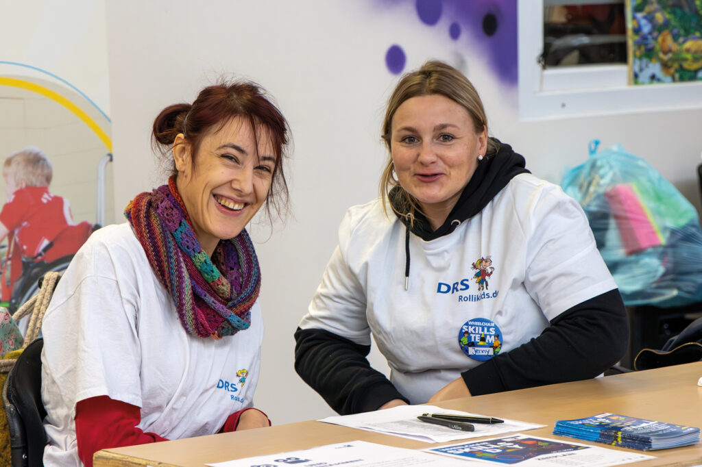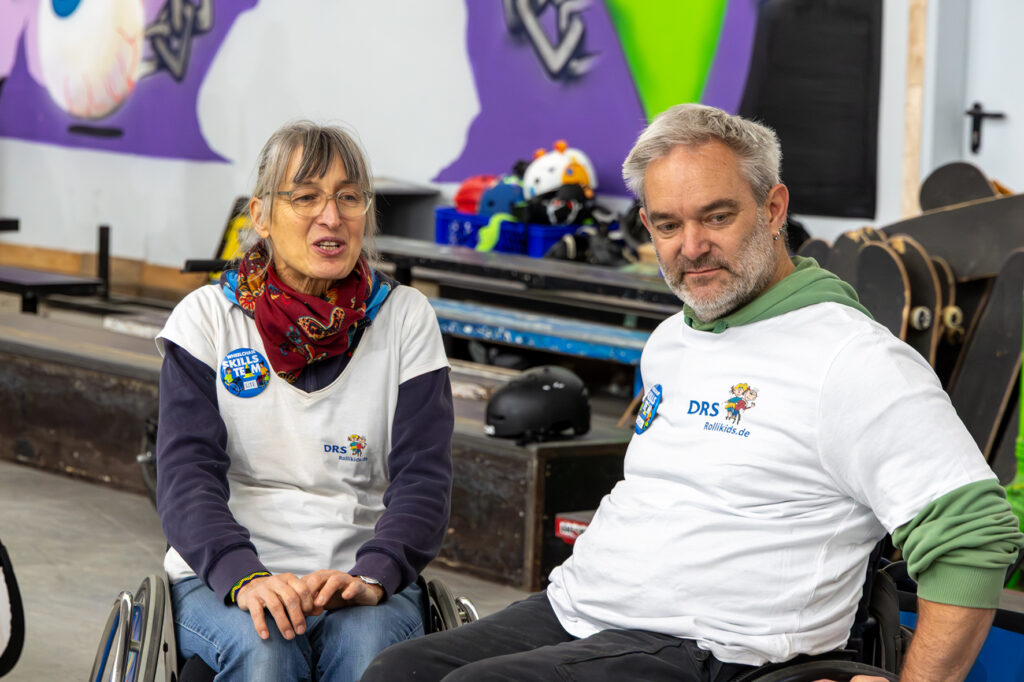 Insgesamt waren rund 150 Teilnehmende mit Begleitung und zahlreiche Besucherinnen in die TSG-Skatehalle gekommen. Über 30 Helfende sorgten für einen reibungslosen Ablauf. Unterstützt wurde das Event von der ›Aktion Mensch‹ und von den langjährigen Partnern der Rollikids den Firmen alber, Pro Activ, Teleflex und Schwalbe, die mit einem Stand vor Ort vertreten waren, und für die Teilnehmenden und Siegerinnen kleine Präsente gespendet hatten. Moderiert wurden der Tag und die jeweiligen Rennen von Jens Naumann von den Rollikids und von David Lebuser (Sit’n’skate).