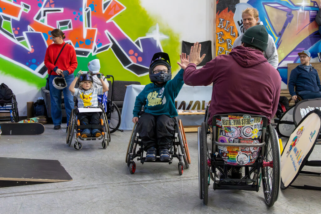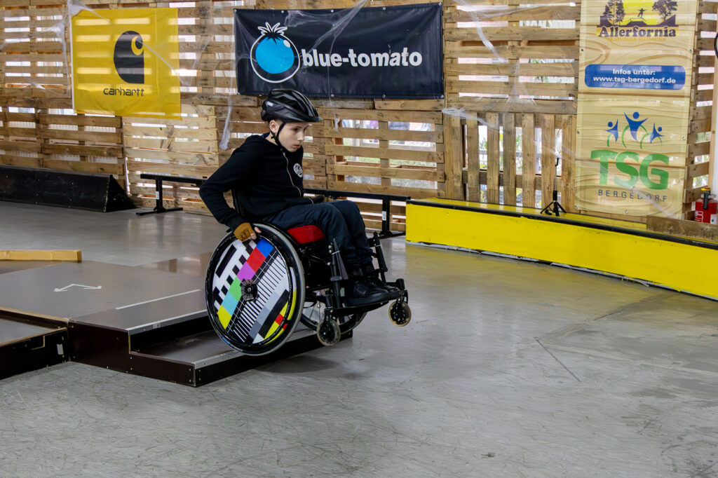 Beim fünften Wheelchair Skills Day in der Allerfornia Hall in Hamburg Bergedorf konnten die teilnehmenden Rollikids unter dem Motto ›Mobilitätstraining meets Actionsport‹ ihre Fähigkeiten mit dem Rollstuhl testen und viele neue Dinge lernen. Der mit viel Herzblut und ehrenamtlichem Einsatz geschaffene Indoor-Skatepark der TSG Bergedorf bot mit seinen beiden Hallen den perfekten Rahmen dafür.