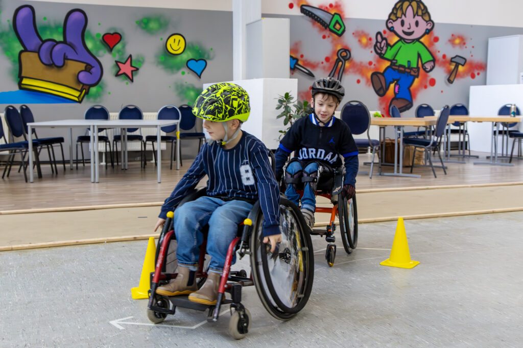 Beim fünften Wheelchair Skills Day in der Allerfornia Hall in Hamburg Bergedorf konnten die teilnehmenden Rollikids unter dem Motto ›Mobilitätstraining meets Actionsport‹ ihre Fähigkeiten mit dem Rollstuhl testen und viele neue Dinge lernen.